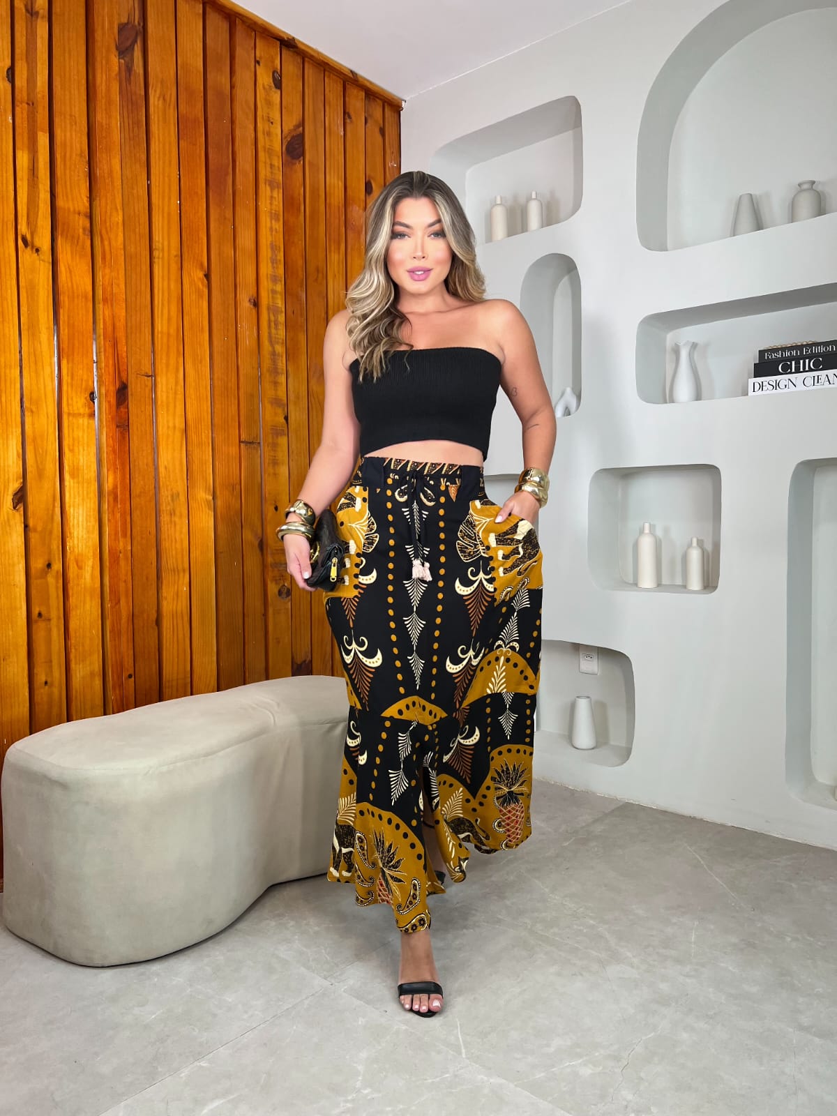 Com um toque envolvente e sofisticado, esta saia longa traz a harmonia perfeita entre o preto intenso e o amarelo queimado em uma estampa artística que exala elegância e personalidade. O caimento fluido valoriza os movimentos e garante conforto com estilo, enquanto o design moderno transforma qualquer produção em um visual marcante e cheio de atitude. Ideal para quem ama se destacar com charme e autenticidade.